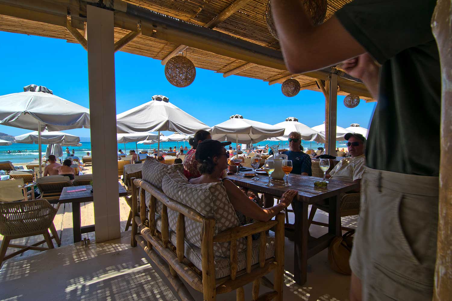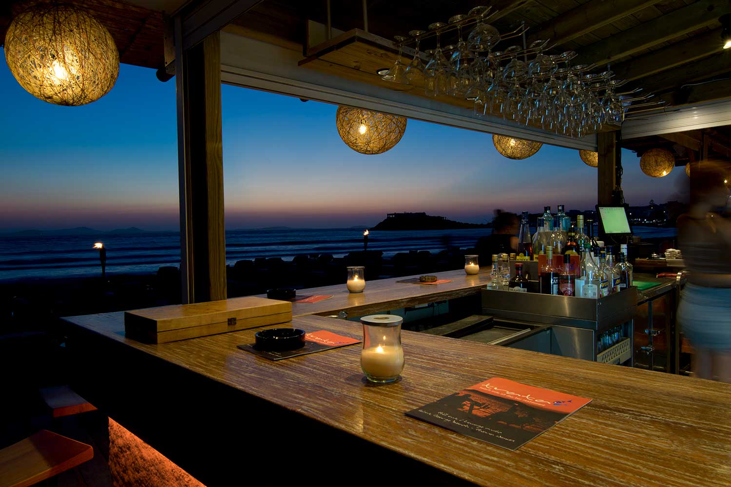 Από τις 9 το πρωί μέχρι και τη 1 μετά τα μεσάνυχτα ο επισκέπτης θα ζήσει μοναδικές στιγμές πίνοντας τον καφέ του, τρώγοντας το γεύμα του, κάνοντας μπάνιο στη θάλασσα ακριβώς μπροστά στο εστιατόριο, ή απολαμβάνοντας το ποτό του χαλαρώνοντας στην ακροθαλασσιά.